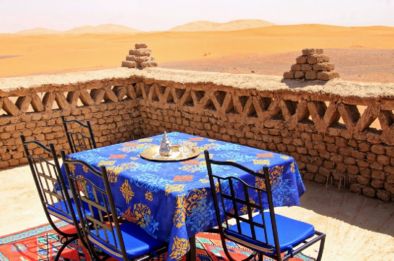 Hôtel restaurant La Gazelle Merzouga Bleue propose un petit déjeuner, le déjeuner et le dîner: